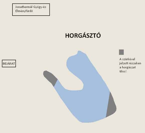 A patkó alakú horgásztó a Jonathermál kemping és fürdő közötti területen terül el, kellemes árnyékot adó fás, bokros ligetes környezetben.