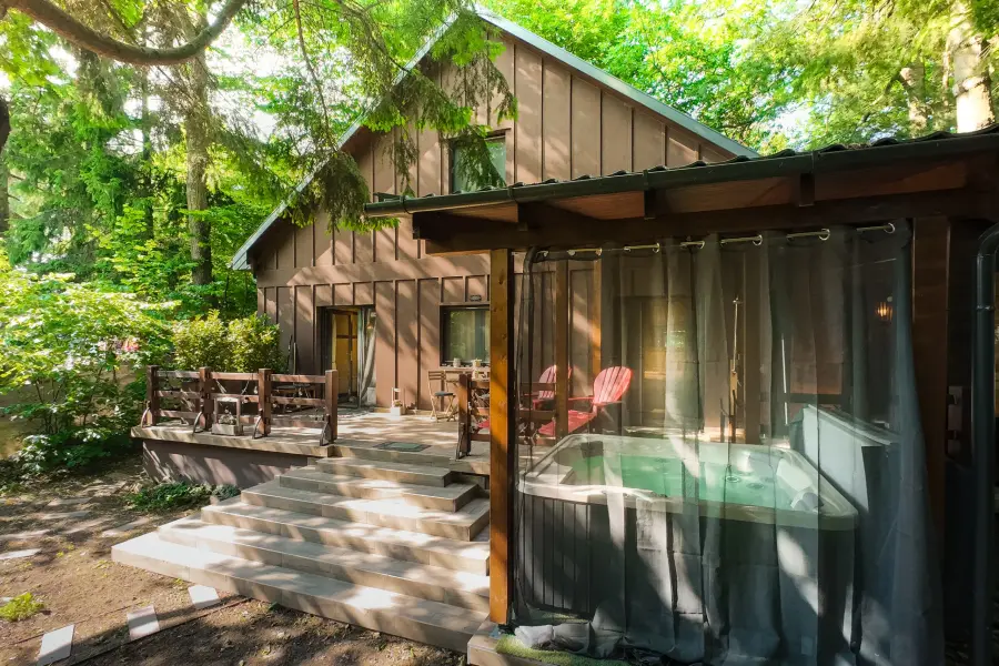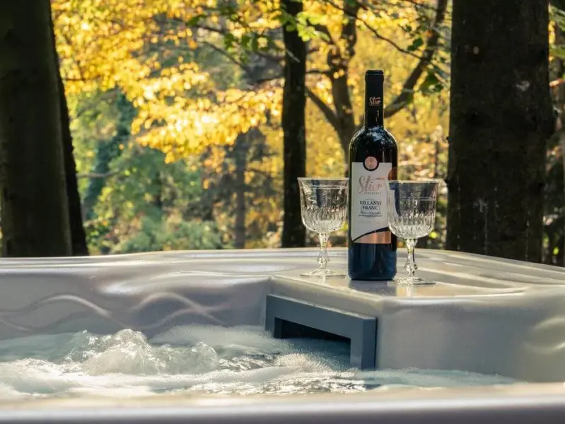 A vendégházunk igazi ékköve a privát wellness részleg, ahol kültéri fedett jakuzzi és szauna várja Önöket.