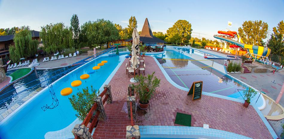 MELEGVIZES CSALÁDI ÉLMÉNYMEDENCE, 33-35°C vízhőmérséklettel, pezsgőágyakkal, vízi gombával. Biztonságos vízmélységgel, megfelelő teret hagyva úszásnak, pancsolásnak alakítottuk ki medencénket. Az egyik élményelem a Vízigomba, mely 1200 mm átmérőjű, 2.5 m magas, egyszerre több ember kényeztetését is szolgálja a kellemes termálvízben. Négy pezsgőágyunk ötvözi a víz, a meleg levegő, az oxigén (ózon), a masszázs és a biológiai adalékanyagok természetes gyógyító hatását. Segítségével felgyorsul a vérkeringés és a nagyobb oxigénjelenlét igazoltan gyógyító hatást fejt ki a mozgásszervi problémákra, reumatikus- és ízületi fájdalmakra, meszesedésre, kopásra, izombántalmakra, vérellátási zavarokra. Nyugtatja az idegrendszert, enyhíti a változókori panaszokat és hozzájárul a mindennapi frissesség és fiatalosság megőrzéséhez.